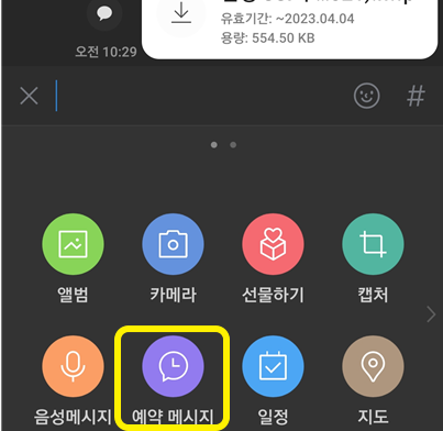 예약 메시지 모양을 클릭하기